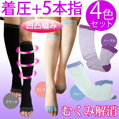 販売単位 4色セット タイプ 着圧ソックス、ハイソックス、5本指ソックス、足指開きソックス サイズ 足のサイズ:22〜25cm 丈:約36cmふくらはぎ:28〜38cm 足首:22.5〜25.5cm 送料 送料無料 配送方法 送料無料の商品の配送方法は当店お任せご指定頂いても変更される場合もございます、予めご了承ください カラー ブラック、ピンク、ブルー、パープル 素材 ナイロン、ポリエステル、ポリウレタン 生産 中国製(企画・デザインは日本) ご注意 ●サイズは目安となりますので、実際の商品と誤差が生じる場合がございます。