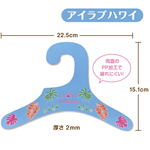 【アイラブハワイ】犬服ハンガー 同柄10本セット(犬用 コンパクト ギフト 紙ハンガー 室内用 日本製 ペット用品 収納 愛犬の洋服整理 インテリア ハワイ アロハ)【あす楽対応】