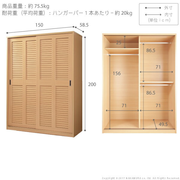 【ランキング1位獲得】引き戸ルーバーロッカー ANEMONE〔アネモネ〕幅150cm通気性抜群!上棚付きだから帽子やバッグも収納可能! I-3500003 シンプル おしゃれ かわいい ハンガー クローゼット 洋服ダンス